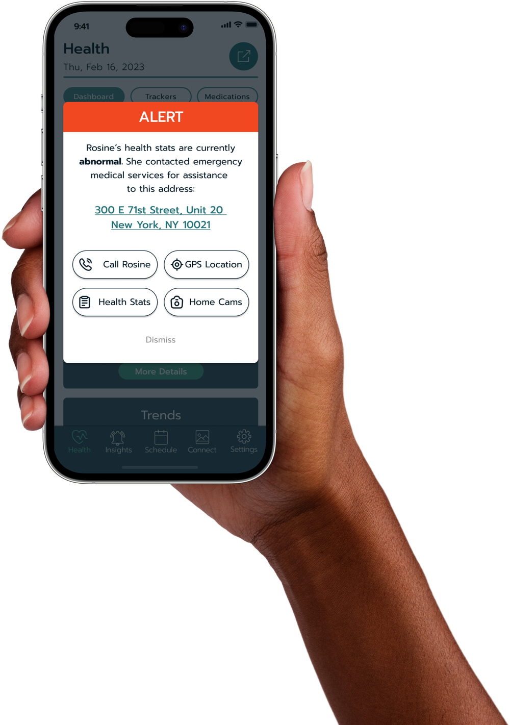 Here, we see connection between two users in a non-emergency event where the Caregiver requests vital and medication updates from the Care Recipient.