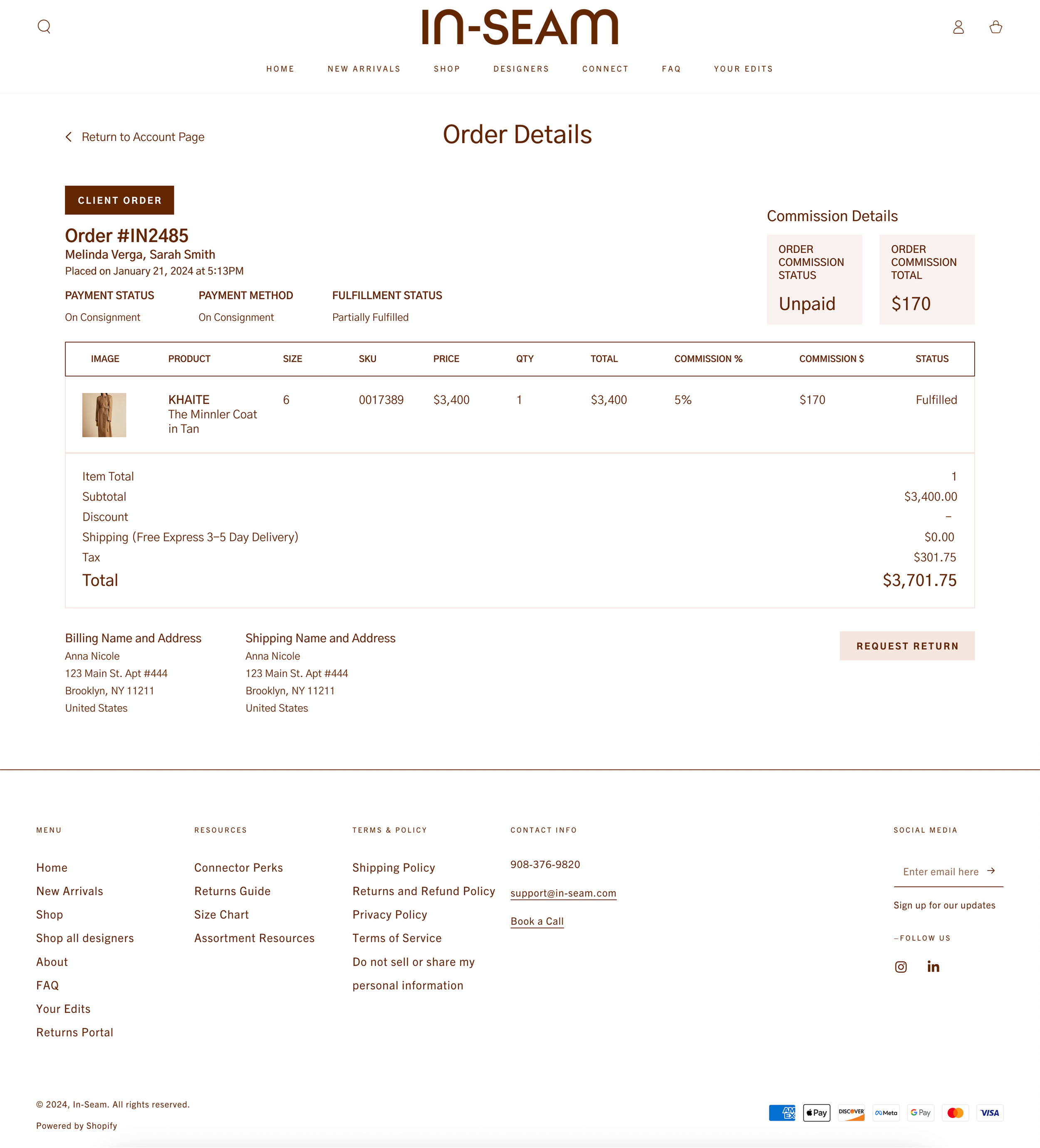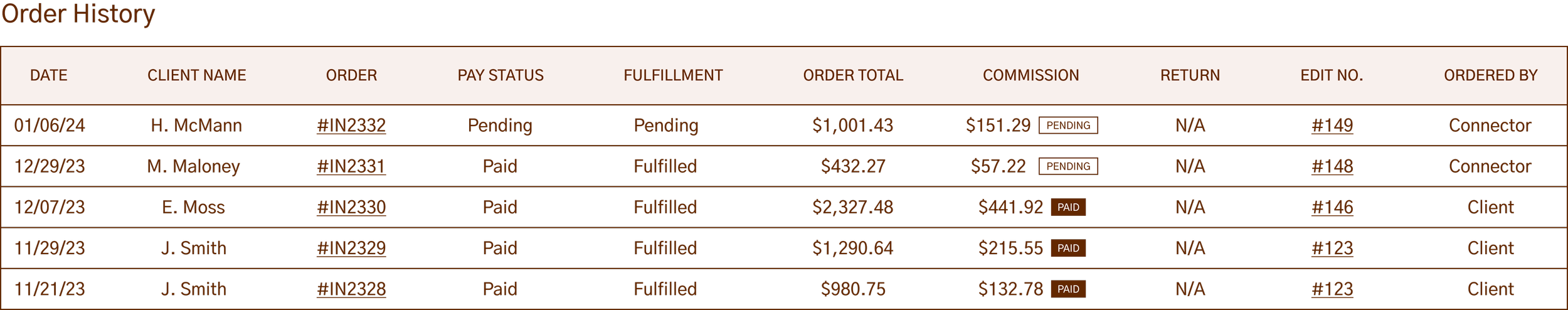 An custom order history was created with status indicators for stylists to track the status of their consignments as well as their potential and actual commission and their payment status in collaboration with Stripe.