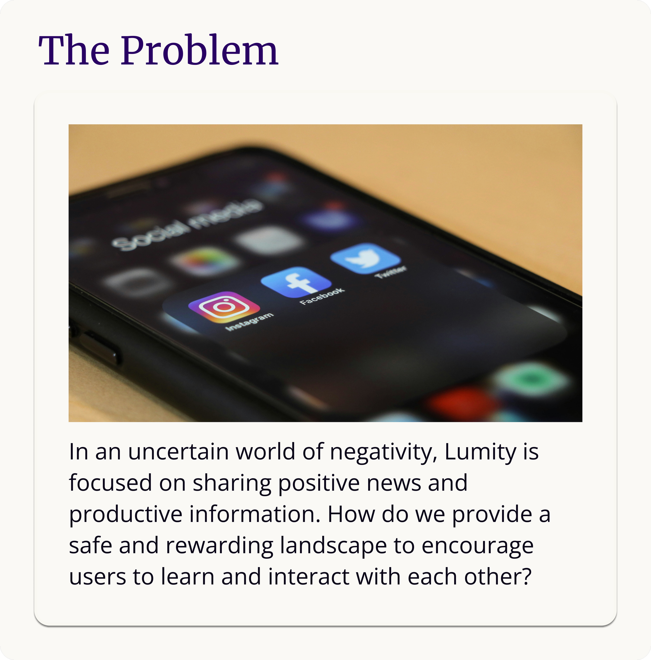 Lumity is an information sharing platform to engage in productive content with a