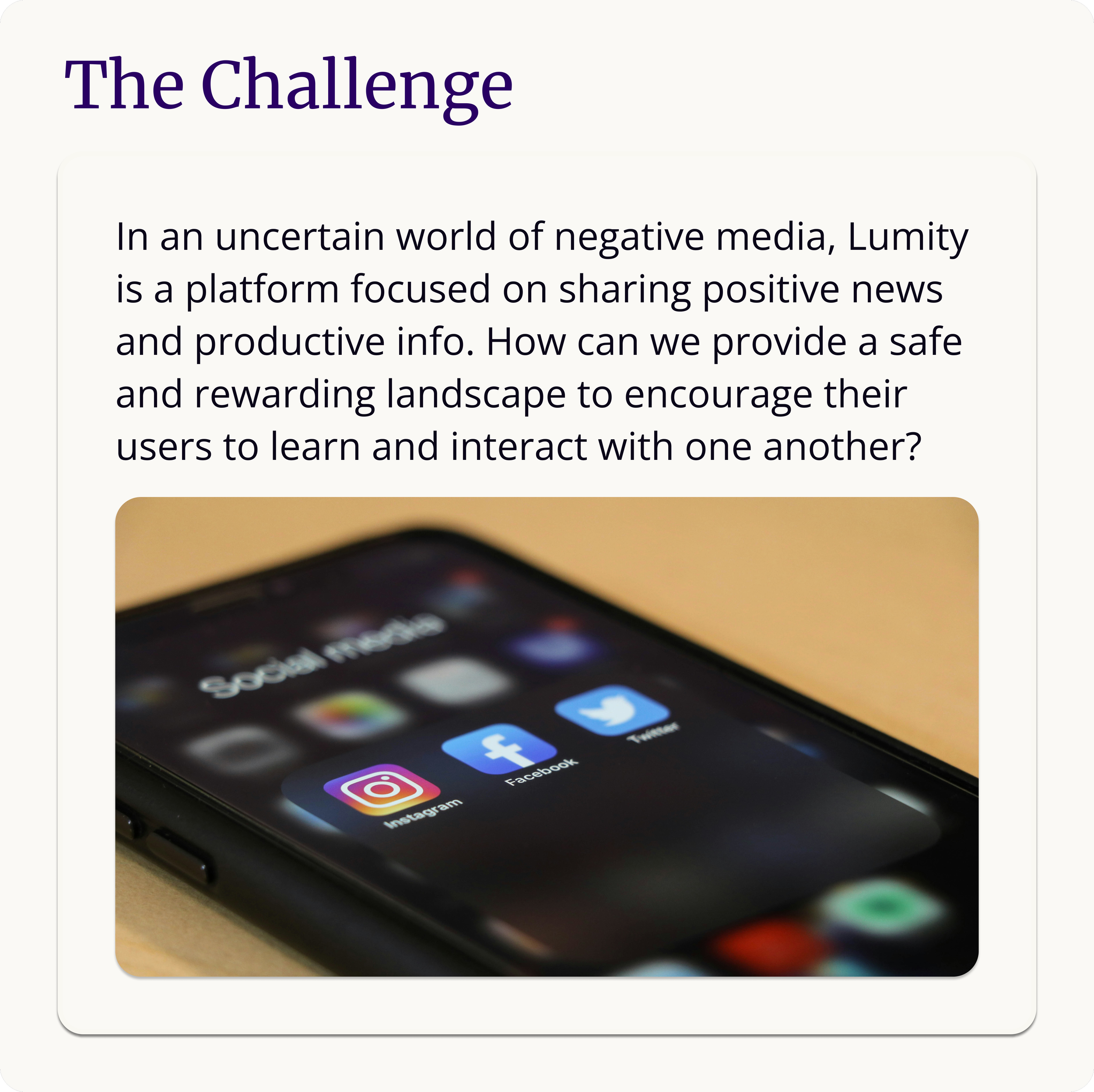Lumity is an information sharing platform to engage in productive content with a growth-oriented, learning community.